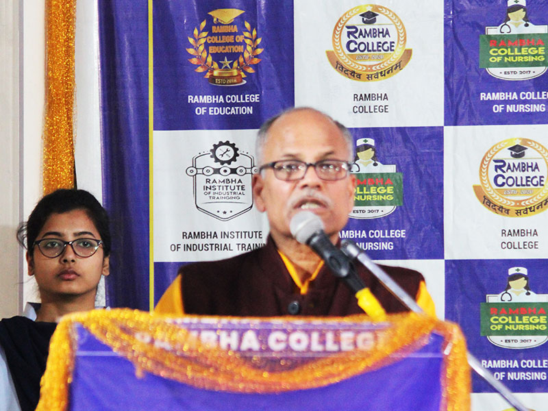 १० मार्च--- रंभा कॉलेज गीतिलता में प्रेरक व्यक्तित्व मृणाल कांत शर्मा जी, देव संस्कृति विश्वविद्यालय और गुरुदेव महतो जी, श्रीनाथ विश्वविद्यालय-- का आगमन। (A motivational session with students.)